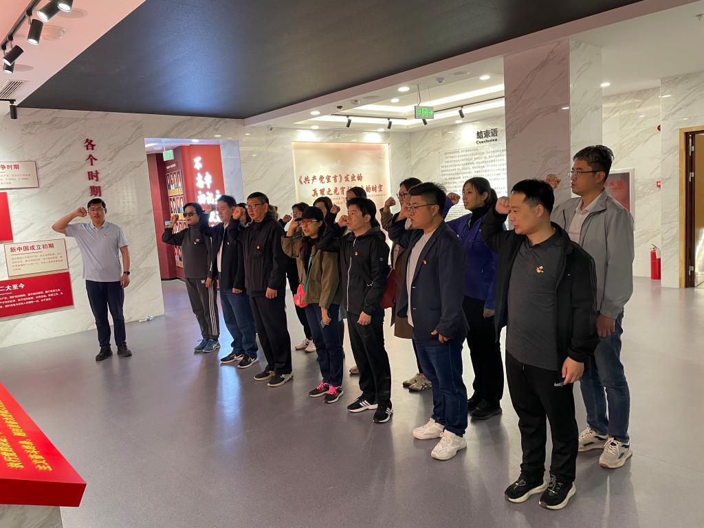 最后,全体党员面向党旗庄严宣誓,重温入党誓词。通过此次学习,进一步提高支部党员的责任感、使命感和光荣感。活动结束后,大家纷纷表示,一定以此次学习为契机,不断强化思想认识,在学习工作中坚定理想信念,在奋发有为中践行使命担当。